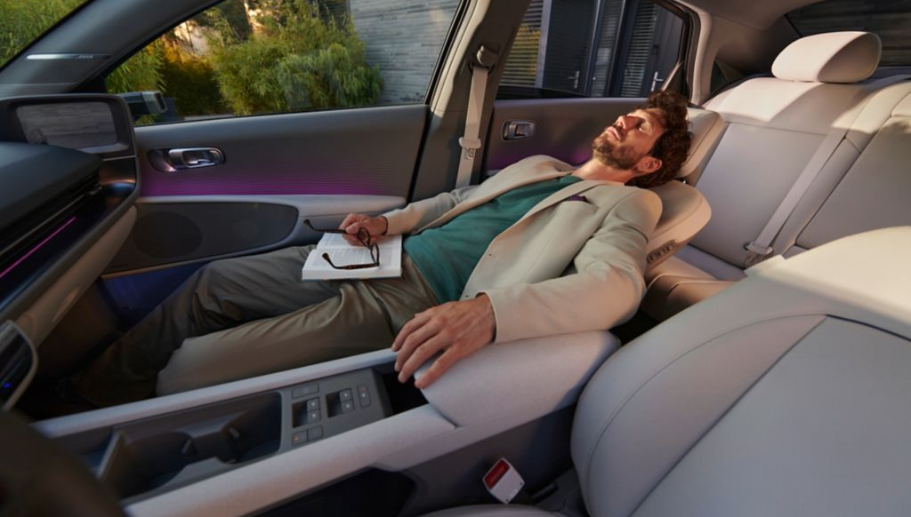 Scaunele din fata cu functie „Relaxation Comfort” (optional) ofera o atmosfera relaxanta printr-o simpla ajustare a unghiului. Pentru optimizarea spatiului interior, acestea sunt cu 30% mai subtiri comparativ cu cele dintr-un autovehicul conventional. In plus, pasagerii beneficiaza de patru porturi USB de tip C si unul de tip A.