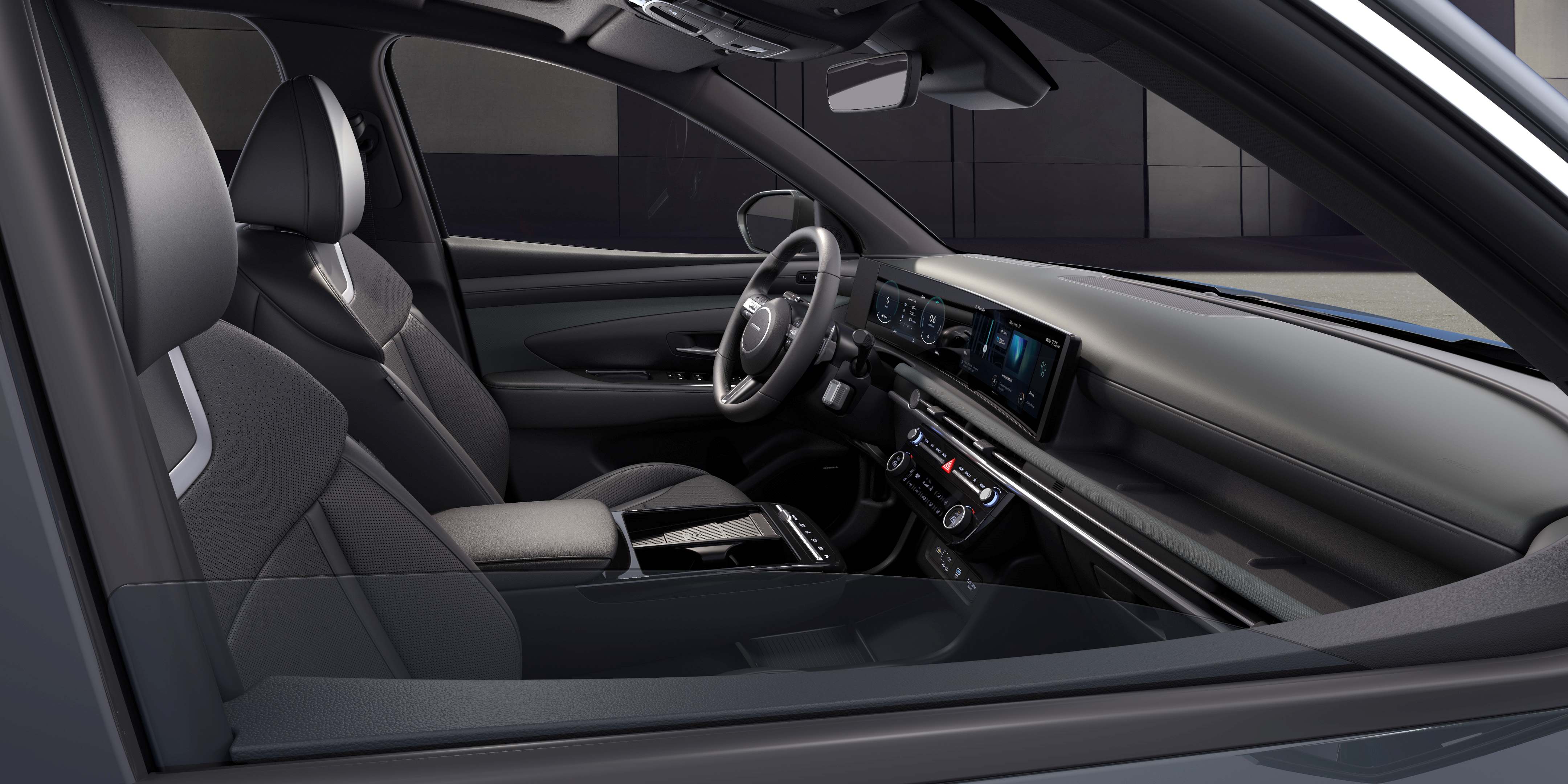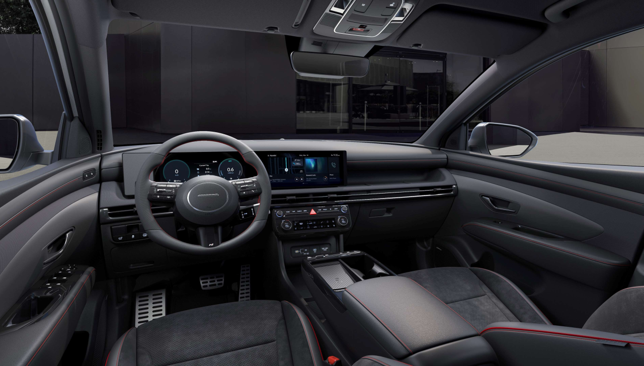 Display-ul panoramic curbat de 12,3 inchi - pentru instrumentarul de bord si pentru sistemul multimedia - ofera atat un aspect futurist, cat si o interfata intuitiva si captivanta. Sistemul Head-Up Display (HUD) de 12 inchi contribuie la imbunatatirea experientei la volan si proiecteaza informatii relevante, direct in campul vizual al conducatorului auto. Tucson va fi disponibil cu functia Digital Key 2, pentru pornirea si controlul de la distanta al autovehiculului prin intermediul smartphone-ului, utilizand tehnologia Ultra-WB (UWB).