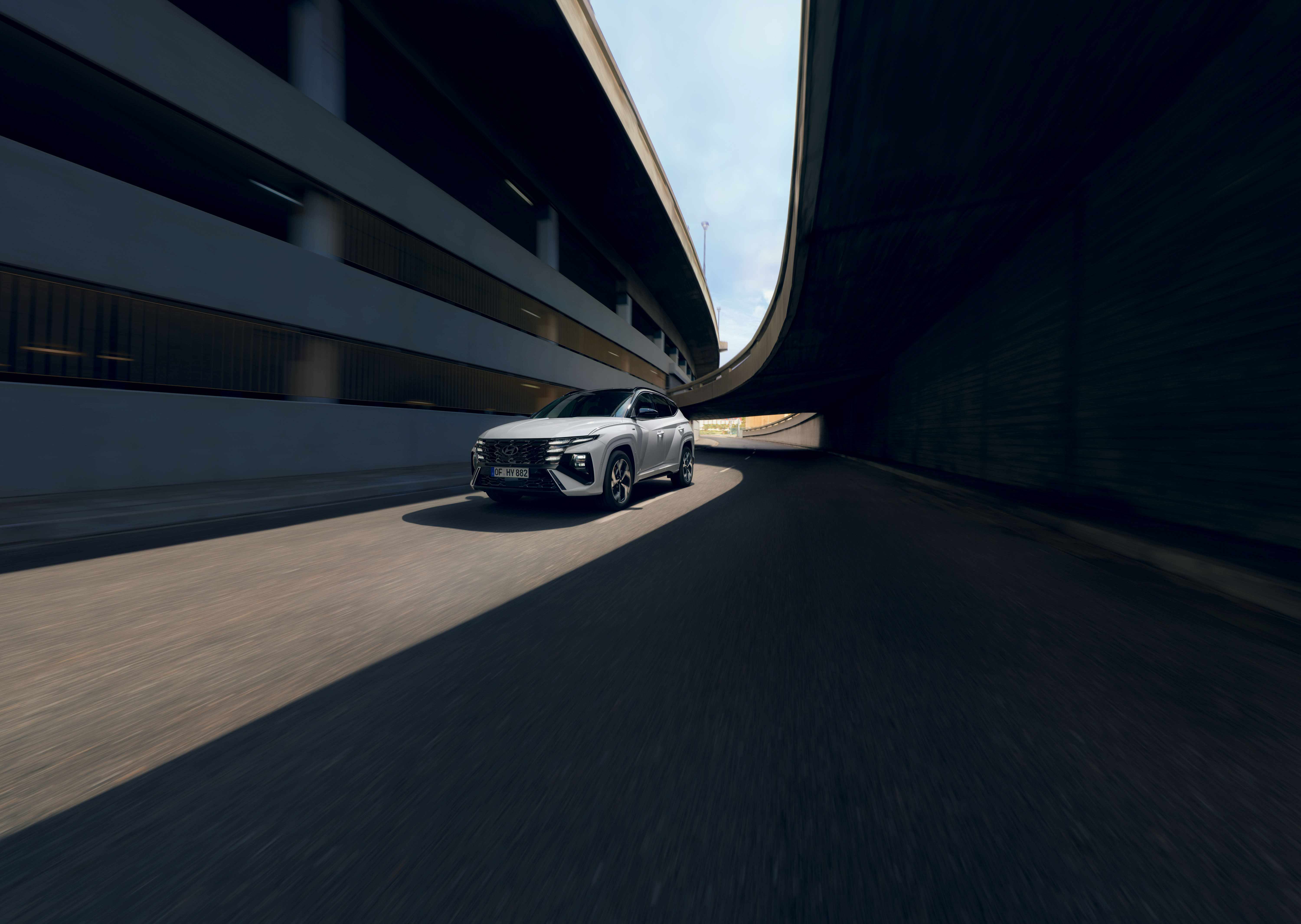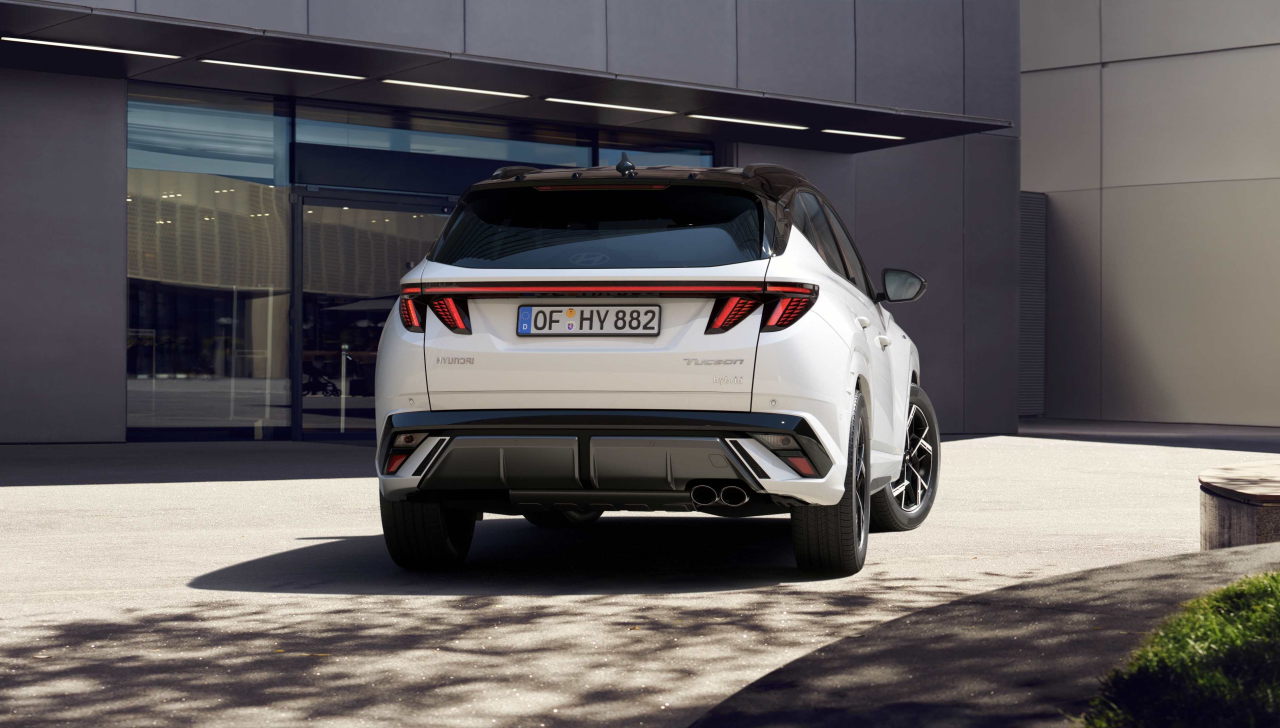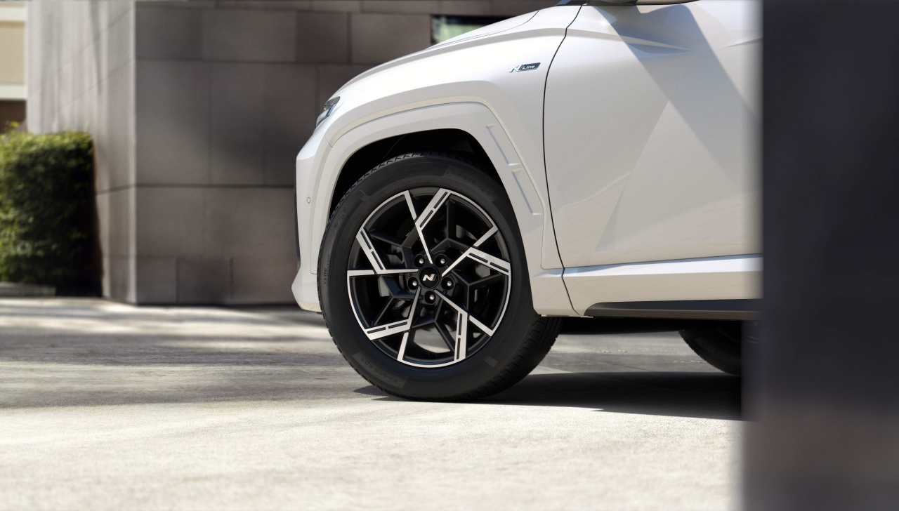 Tucson N Line pastreaza caracterul sportiv specific echiparii N Line, insa cu accente mai elegante pentru: barele de protectie fata/ spate, grila, jantele din aliaj de 19 inchi si ornamentele laterale (in culoarea caroseriei). Luminile de zi au fost pastrate de la versiunea standard.